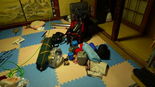 90Lリュック、テントやら寝袋やらランタン、もろもろ詰め込みます。