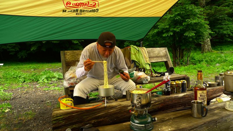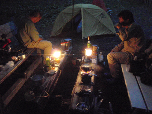 そして定番の塩ラーメンを食べて身体暖まったころテントへ。